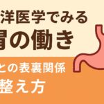 東洋医学では「五臓六腑」の一つとして大切な役割を持ち、食べたものをエネルギーに変えて全身へ届けると考えられています。